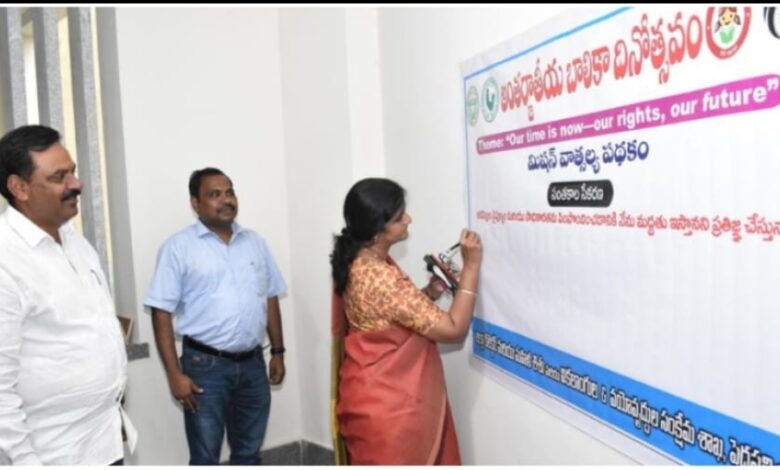 لڑکیوں کو ہنر مند اور بااختیار بنانے میں ہر کسی کو اپنا کردار ادا کرنے کا ضلع کلکٹر پداپلی ڈاکٹر سنگیتا ستیہ نارائنا نے متعلقہ عہدیداروں اور عوام سے مطالبہ کیا ہے۔ تفصیلات کے مطابق جاریہ ماہ 11 اکٹوبر کومنعقد شدنی لڑکیوں کے عالمی دن کے موقع پر تعمیر نو کلکٹریٹ کامپلکس ہال میں محکمہ بہبود خواتین ، اطفال ، معمرین و معذورین کے زیر اہتمام منعقدہ مشن واتسالیا اسکیم کے تحت دستخطوں کی حصولی پروگرام میں ضلع کلکٹر ڈاکٹر سنگیتا ستیہ نارائنا نےضلع ایڈیشنل کلکٹر لکشمی نارائنا، مجالس مقامی ایڈیشنل کلکٹر کمار دیپک کے ہمراہ شرکت کرتے ہوئے مکمل تعاون فراہم کرنے کا تیقن دیا اور دستخط کرتے ہوئے حلف لیا۔ اس دستخطوں کی حصولی پروگرام میں ضلع ویلفیر آفیسر رؤف خان، ضلعی عہدیداران و دیگر نے شرکت کی۔