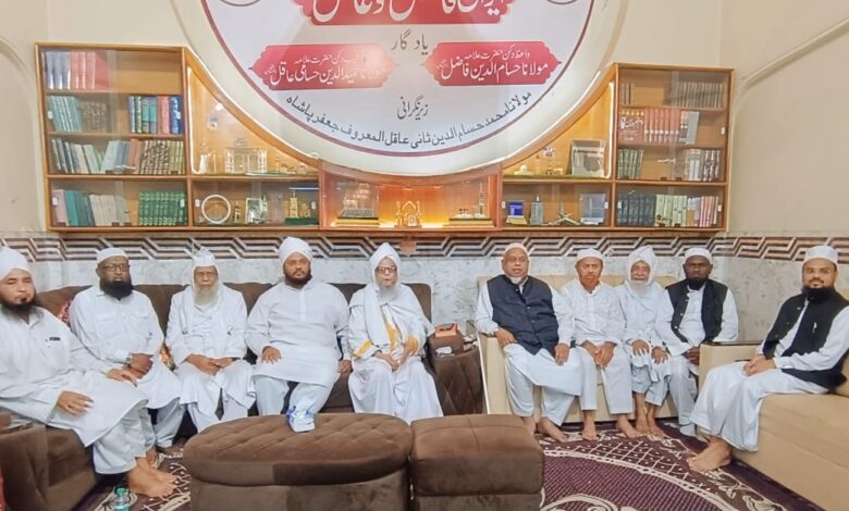 مولانا جعفر پاشاہ نے اکابر مرحوم علماء کرام مولانا محمد حسام الدین فاضل اور مولانا محمد حمید الدین حسامی عاقل کی دینی خدمات کا تذکرہ کرتے ہوئے کہا کہ ان اللہ والوں نے برسوں دین کی خدمت انجام دی ہے گمراہ لوگوں کو راہ راست پر لایا ہے ان بزرگوں کے وعظ و نصیحت کی وجہ سے سینکڑوں نہیں ہزاروں لوگوں نے دامن اسلام سے وابستگی اختیار کی مولانا محمد حسام الدین فاضل اور مولانا محمد حمید الدین حسامی عاقل کی دینی خدمات روشن ہیں ان بزرگوں نے ملت اسلامیہ میں زبردست دینی انقلاب پیدا کیا انہوں نے کہا کہ پہلے راستے کچے تھے نیتیں پکی تھی لیکن اب لوگوں کی نیتوں میں فتور اگیا ہے اور وہ اسلام کو اپنی مرضی سے سمجھنے کی کوشش کر رہے ہیں۔