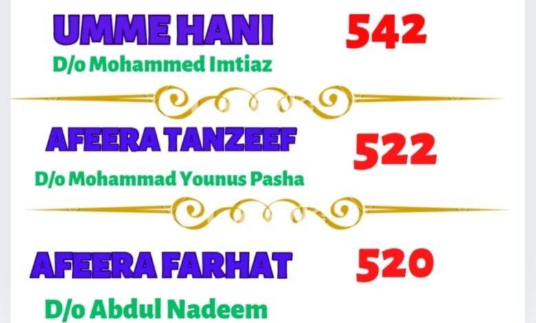نو نہال ہائی اسکول کورٹلہ کے تین طالبات تلنگانہ اردو اکیڈمی بسٹ اسٹوڈنٹ ایوارڈ کے لیے منتخب