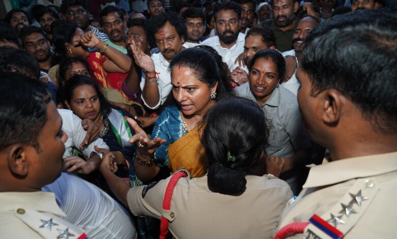 صدرتلنگانہ جاگروتی کے کویتا کو سنٹرل لائبریری چکڑ پلی میں داخل ہونے سے روک دیاگیا