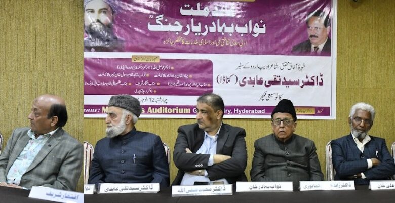 ان خیالات کا اظہار شہرہ آفاق محقق،شاعر، ادیب اور اردو کے سفیر ڈاکٹر سید تقی عابدی نے میڈیا پلس فاؤنڈیشن کے زیر اہتمام ”قائد ملت نواب بہادر یار جنگ کی ادبی سماجی ثقافتی علمی اور اسلامی خدمات کا مختصر جائزہ ”کے عنوان پر منعقدہ ایک علمی اور ادبی نشست سے میڈیا پلس آڈیٹوریم گن فاؤنڈری حیدرآبادمیں خطاب کرتے ہوئے کیا ڈاکٹر سید خالد شہباز کنوینر نے اجلاس کی کاروائی چلائی اور قائد ملت نواب بہا دریا رجنگ کو پرا ثر خراج عقیدت پیش کیا۔ابتدا میں ڈاکٹر سید فاضل حسین پرویز ڈائریکٹر میڈیا پلس نے خیر مقدم کیا اور کہا کہ نواب قائد ملت بہادر یار جنگ کی خدمات سے ملت اسلامیہ کو کچھ حد تک واقف کروانے کے لیے اس نشست کا اہتمام کیا گیا ہے امید ہے کہ ہم بہادر یار جنگ کی زندگی کے مختلف پہلوؤں سے واقف ہوں گے۔ڈاکٹر سید تقی عابدی نے اپنے