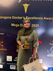 تلنگانہ ڈاکٹرس ایکسلنس ایوارڈس کی یہ تقریب آئی ایس ٹی اے میڈیا 360 کے زیر اہتمام 15نومبر کو مایا لگژری کنونشن کونڈہ پور میں ہوئی۔ ڈاکٹر شمیم النساکیر ہاسپٹل ہائی ٹیک سٹی اور ماون میڈیکل سنٹر بنجارہ ہلز میں خدمات انجام دے رہی ہیں۔ ڈاکٹر شمیم النسا مختلف باوقار اداروں میں کئی برسوں کا تجربہ رکھتی ہیں۔ وہ بریسٹ کینسر مینجمنٹ، اونکو پلاسٹک پرنسپلس اور منی ملی انوسیو سرجیکل پریکٹسس کی ماہر ہیں۔