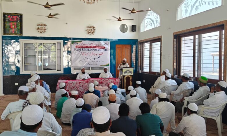 اور جو حلقے کچھ واقفیت رکھتے ہیں وہ اندراجات اور اپنے مساجد، عیدگاہوں وقبرستانوں ودیگر مسائل کو لیکر الجھن کا شکار ہیں، اسی لئے عوام میں پائی جانے والی اس تشویش وبے چینی کو دور کرنے اور اپنے اپنے مقامات کے مساجد، مذہبی ملی واوقافی جایئدادوں کے صحیح اندراج اور اس ضمن میں مکمل رہبری ورہنمائی کیلئے جمعیتہ علماء نے اس اجلاس کا اہتمام کیا ہے، مولانا نے تمام شرکاء وحاضرین کا خیرمقدم کرتے ہوئے اس اجلاس کی کارروائی چلائی،