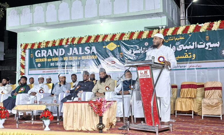 تلگو کے معروف داعی محترم عبدالرحیم صاحب نے اتحادِ ملت اور سیرتِ نبوی ﷺ کی جامع تعلیمات پر مؤثر خطاب کیا۔
