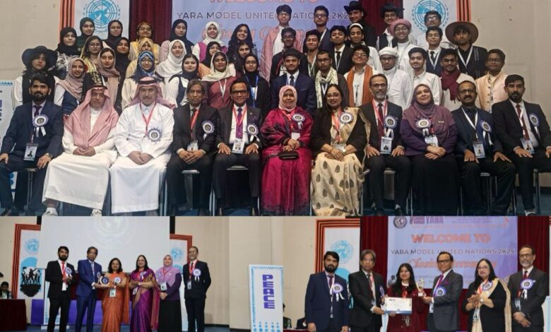 ریاض۔ (پریس نوٹ) یارا انٹرنیشنل اسکول ریاض نے دو روزہ “یارا ماڈل یونائیٹڈ نیشنز 2025” کا کامیابی کے ساتھ انعقاد عمل میں لایا۔ اس ماڈل اجلاس میں عالمی مسائل پر بحث کرنے، ان کی قائدانہ صلاحیتوں کو ابھارنے اور عمل میں اخلاقیات اور دیانتداری کو اپنانے کے لیے نوجوان رہنماؤں کو اکٹھا کیا گیا۔