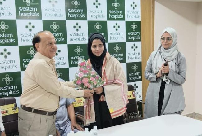 ویسٹرن ملٹی اسپیشالٹی اسپتال کے میڈیکل ایڈمنسٹریٹر ڈاکٹر سید شاہ علی حسینی نے حاضرین کا شکریہ ادا کرتے ہوئے کہا کہ وسٹرن اسپتال کا انتظامیہ افیرہ کی شاندار کامیابی پر بے حد خوش اور فخر محسوس کررہا ہے۔ ہمارا انتظامیہ ہر شعبہ میں نئی نسل ابھرتے لڑکے لڑکیون کی ہمیشہ ہمت افزائی کا قائل ہے۔ افیرہ کی کامیابی نئی نسل کے لیے قابل تقلید اور فخر کا