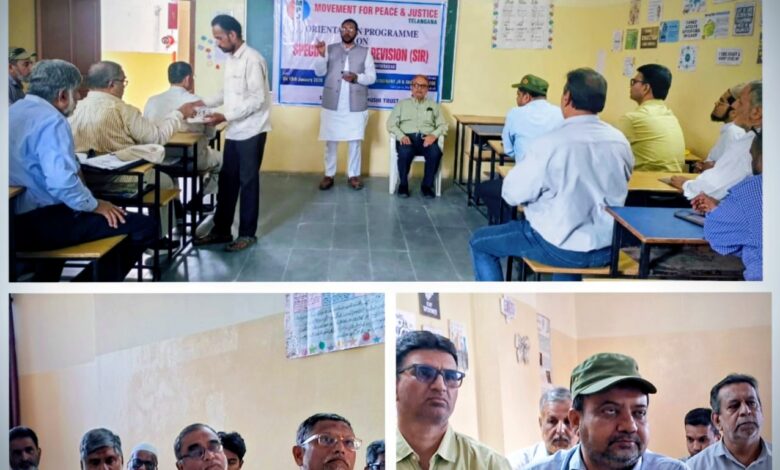 حیدرآباد ۔ موومنٹ فار پیس اینڈ جسٹس (MPJ) نے سید غوث خاموشی ٹرسٹ کے تعاون سے ایس آئی آر پر ایک اورئنٹیشن پروگرام وژنری جونیر اینڈ ڈگری کالج قاضی پورہ شاہ علی بنڈہ پر منعقد کیا جس میں کئ ین جی اوز اور دلچسپی رکھنے والے افراد نے شرکت کی ۔