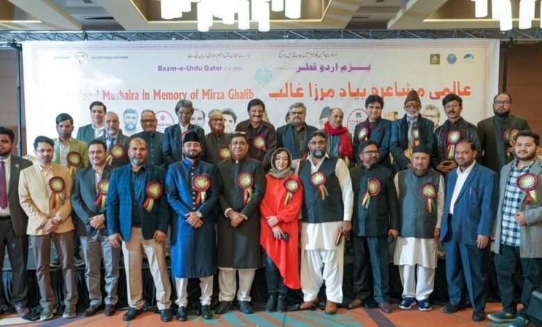 اردو و فارسی ادب کے آفتابِ تاباں، مرزا اسد اللہ خان غالبؔ کی ہمہ گیر ادبی عظمت اور لازوال فکری وراثت کو خراجِ عقیدت پیش کرنے کے لیے قطر کی قدیم ترین اردو ادبی تنظیم “بزمِ اردو قطر” (قائم شدہ 1959) کے زیرِ اہتمام بروز جمعہ کو ہوٹل کراؤن پلازا میں ایک نہایت شکوہ آفریں، باوقار اور یادگار عالمی مشاعرہ منعقد ہوا۔ یہ محفلِ اہلِ ذوق کے لیے ایک روح پرور اور دل نواز اجتماع ثابت ہوئی۔