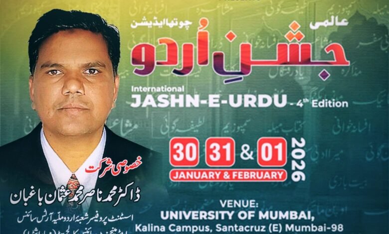 اورنگ آباد : اُردو زبان و ادب کے فروغ کے لیے منعقد کیا جانے والا معروف اور کثیر المقاصد سالانہ ادبی و ثقافتی پروگرام عالمی جشن اُردو کا چوتھا ایڈیشن ممبئی میں تین روزہ ادبی و ثقافتی جشن 30 اور 31 جنوری اور یکم فروری 2026 کو ممبئی یونیورسٹی کالینہ کیمپس سانتا کروز ممبئی میں منعقد ہو گا۔