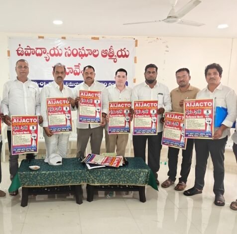 حیدرآباد/جے اے سی (JAC) کی قیادت میں تمام اساتذہ تنظیموں کا ایک مشترکہ ہنگامی اجلاس PRTU بھون، نارائن گوڑہ میں منعقد ہوا، جس کی مشترکہ صدارت جناب پی۔ دامودر ریڈی (PRTU)، جناب سدانند گوڈ (STU) اور جناب ایس۔جی۔ راؤ (UTF) نے کی۔ اجلاس میں 5 فروری کو منعقد ہونے والے “چلو دہلی پارلیمنٹ مارچ” پروگرام کے سلسلے میں تفصیلی مشاورت اور تیاریوں کا جائزہ لیا گیا۔