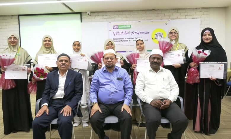 حیدرآباد:30 جنوری (پریس ریلیز)ایم ایس کریٹیو اسکول کی سات طالبات کو باوقار ورلڈ ٹین پارلیمنٹ 2026 کے لیے منتخب ہونے کا اعزاز حاصل ہوا ہے۔ یہ ایم ایس ایجوکیشن اکیڈ یمی کے لیے ایک بار پھر فخر و مسرت کا موقع ہے، کیونکہ ادارے کے طلبہ کو مسلسل پانچویں سال عالمی سطح کے معتبر ادارے ورلڈ ٹین پارلیمنٹ کے پانچویں سیشن کے لیے منتخب کیا گیا ہے۔ ورلڈ ٹین پارلیمنٹ دنیا کی پہلی طلبہ پر مبنی عالمی تنظیم ہے جہاں دنیا بھر سے منتخب نوجوان عالمی رہنما مقامی اور عالمی سطح کے اہم سماجی، تعلیمی اور انسانی مسائل کے حل کے لیے سنجیدہ اور بامقصد تجاویز پیش کرتے ہیں۔