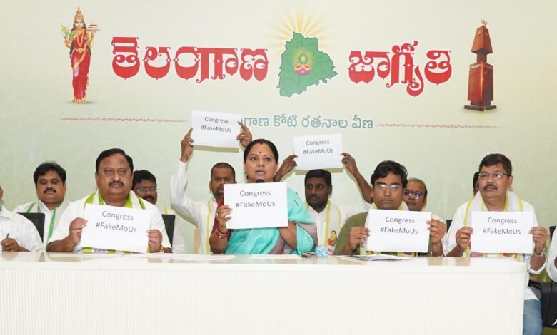 صدر تلنگانہ جاگروتی کلواکنٹلہ کویتا نے بنجارہ ہلز میں واقع تلنگانہ جاگروتی دفتر میں پریس کانفرنس سے خطاب کرتے ہوئے کہا کہ کانگریس حکومت جس سرمایہ کاری کے حصول کے دعوے کر رہی ہے وہ تمام کے تمام جھوٹے اور من گھڑت ہیں۔ انہوں نے کہا کہ ہزاروں کروڑ روپئے کے ایم او یوز جن کمپنیوں کے ساتھ کئے جانے کا دعویٰ کیا جا رہا ہے،