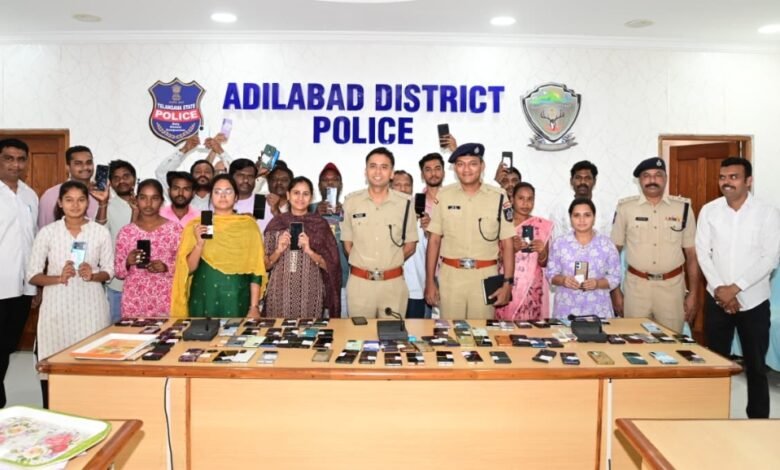 ضلع عادل آباد میں گمشدہ،مسروقہ 107 موبائیل فونس ضلع ایس۔پی۔اکھیل مپاجن کے ہاتھوں متاثرین میں تقسیم
