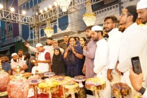 صدر تلنگانہ جاگروتی کلواکنٹلہ کویتا نے محمود گوڑہ، سکندرآباد میں منعقدہ دعوت افطار میں مہمان خصوصی کی حیثیت سے شرکت کی۔ اس موقع پر مقامی عوام اور معززین نے ان کا پرتپاک استقبال کیا اور گلدستے پیش کرتے ہوئے خیرمقدم کیا۔افطار تقریب سے خطاب کرتے ہوئے کلواکنٹلہ کویتا نے کہا کہ آج اس بابرکت افطار کی محفل میں آپ سب کے درمیان موجود ہونا میرے لئے باعث خوشی ہے۔ انہوں نے کہا کہ رمضان المبارک محبت، بھائی چارے اور انسانیت کا درس دیتا ہے اور وہ دعا گو ہیں کہ یہ مبارک ساعتیں ہم سب کے لئے خیر و برکت، امن اور خوشحالی کا سبب بنیں۔ معاشرہ محبت و انسانیت کے راستے پر آگے بڑھتا رہے۔