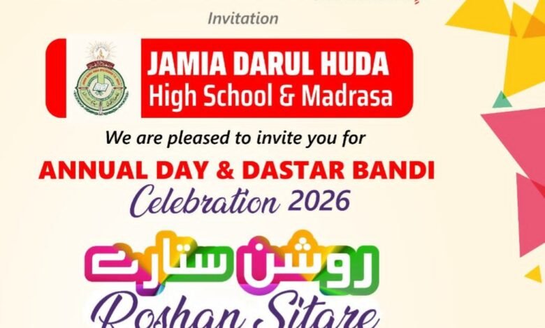 جامعہ دارالہدیٰ وادی ھدیٰ پہاڑی شریف حیدرآباد کے زیرِ اہتمام سالانہ جلسہ و دستار بندی بروز ہفتہ، 28 مارچ 2026ء، شام ٹھیک 6 چھ بجے جامعہ دارالہدیٰ کے احاطہ وادی ھدیٰ پہاڑی شریف حیدرآباد پر منعقد ہوگا۔ اس تقریب کی صدارت امیر حلقہ جماعت اسلامی ہند، حلقہ تلنگانہ و صدر اسلامک سوشیل سروس سوسائٹی حیدرآباد جناب محمد اظہرالدین صاحب کریں گے۔جامعہ کے ایڈمنسٹریٹر جناب آصف محی الدین کے مطابق اس سالانہ جلسہ کے موقع پرحفظ قرآن کی تکمیل کرنے والے طلبہ دستارِ فضیلت سے سرفراز کیے جائیں گے