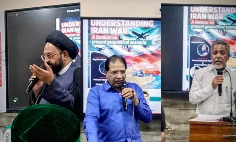 حیدرآباد ۔ مشرق وسطی کے موجودہ حالات اور عالمی سیاست کے تناظر میں ایران جنگ کی تفہیم کے موضوع پر ڈان ہائی اسکول پرانی حویلی میں ایک سیمینار منعقد ہوا جس کا اہتمام چیئرمین ڈان گروپ آف انسٹی ٹیوشنس جناب فضل الرحمن خرم نے کیا تھا۔ سیمینار سے خطاب کرتے ہوئے جناب شجیع اللہ فراست سینئر صحافی و اینکر4 ٹی وی نے امریکہ اور ایران جنگ پر مختلف پہلوؤں سے روشنی ڈالی اور اپنے پر مغز خطاب میں بتایا کہ موجودہ پرامن ماحول کی تباہی کا سب سے بڑا سبب امریکی صدر ڈونالڈ ٹرمپ ہے۔