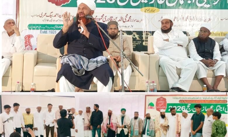 نظام آباد:11/ اپریل (نیوز اینڈ ویوز میڈیا سرویس) وللہ علی الناس حج البیت من استطاع الیہ سبیلا (آل عمران)”اور لوگوں پر خدا کا حق ہے کہ جو اس کے گھر تک پہونچنے کی استطاعت رکھتا ہو وہ اس کا حج کرے”حج کرنے میں صاحب استطاعت تاخیر اور ٹال مٹول ہرگز نہ کریں خدا کے گھر کی زیارت اور حج محض اللہ تبارک و تعالیٰ کو خوش کرنے کے لئے کریں کسی اور دنیوی غرض سے اس پاکیزہ مقصد کو آلودہ نہ کریں واتمو ا ”الحج و العمرۃ و اللہ ” (البقرہ) ”حج اور عمرے کو خدا کی خوشنودی کے لئے پورا کریں،” تربیتی اجتماع عازمین حج نظام آباد، بودہن، آرمور کاماریڈی، بانسواڑہ، نرمل، بھینسہ، مدہول حج سال 2026 کیلئے ڈی ایم گارڈن فنکشن ہال ساٹاپور گیٹ نظام آباد تلنگانہ پر سید دادے علی اینڈ سنس تاجر پارچہ و حج سوسائٹی نظام آباد کی رہنمائی میں مہمان خصوصی حضرت مولانا الحاج محمد انور صاحب قبلہ کنٹرولر امتحانات جامعہ نظامیہ حیدرآباد نے خطاب کرتے ہوئے کیا