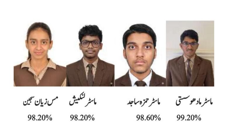 اس شاندار کارکردگی کی قیادت کرتے ہوئے، اسکول کے ٹاپر ماسٹر۔ مادو سستی نے شاندار 99.2% نمبرات حاصل کیے، جبکہ ماسٹر حمزہ ساجد نے شاندار 98.6 فیصد کے ساتھ دوسری پوزیشن حاصل کی تو وہیں ماسٹر لنکیش سراوانن اور مس زیان سجین، دونوں نے 98.2 فیصد قابل تعریف اسکور کر کے تیسری پوزیشن حاصل کی۔
