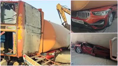 80 ٹن وزنی ٹینکر کار پر الٹ گیا – ہائی کورٹ وکیل کار میں دب کر ہلاک