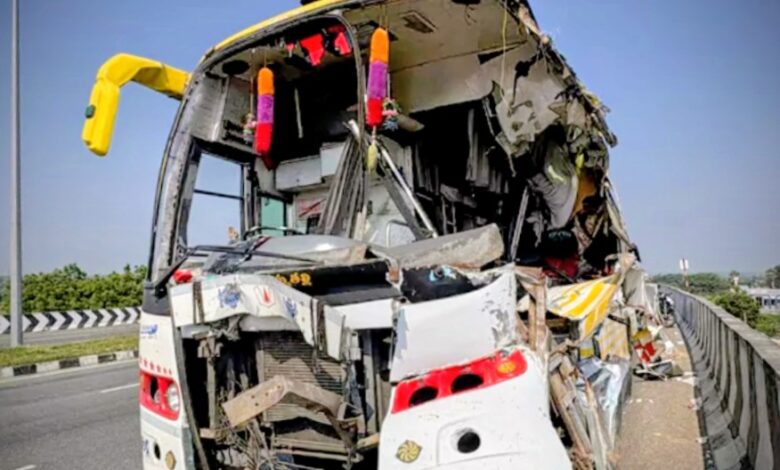 حیدرآباد ۔ ریاست آندھراپردیش میں حیدرآباد وجے واڑہ ہائی وے پر نندی گاما کے قریب واقع اناساگر میں منگل کی علی الصبح خوفناک سڑک حادثہ پیش آیا۔