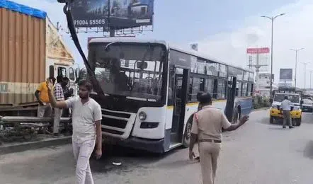 حیدرآباد کے مضافاتی علاقہ میں ایک بڑا سڑک حادثہ اُس وقت پیش آیا جب چہارشنبہ کی صبح پٹن چیرو کے موتھنگی گاؤں کے قریب ایک آر ٹی سی بس بے قابو ہو کر ڈوائیڈر اور برقی کھمبے سے ٹکرا گئی۔ حادثہ قومی شاہراہ نمبر 65 پر اُس وقت پیش آیا جب بس ڈرائیور نے سامنے کھڑی کار کو بچانے کی کوشش کی۔