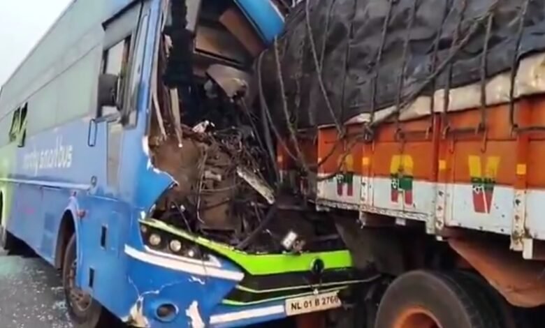 حیدرآباد ۔ حیدرآباد سے آندھرپردیش کے ایلور جانے والی خانگی ٹراویلس کی بس ریاست تلنگانہ کے سوریہ پیٹ کے کوداڑ بائی پاس پر قومی شاہراہ 652 پر علی الصبح ایک لاری کو پیچھے سے ٹکرا گئی۔