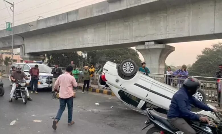 حیدرآباد ۔ چہارشنبہ کی علی الصبح شہر کے بیگم پیٹ فلائی اوور پر ایک کار الٹ گئی۔