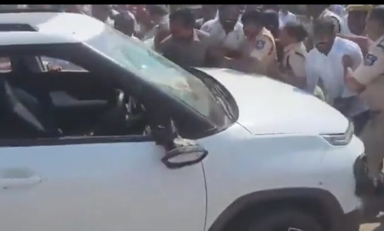 کاماریڈی میں بی جے پی ایم ایل اے کیمپس آفس کے باہر ہنگامہ، کانگریس لیڈر کی کار الٹ دی گئی