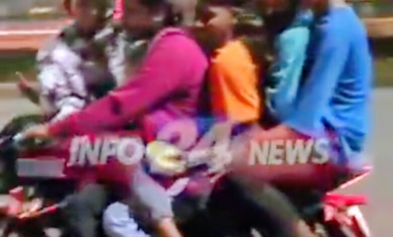 ایک ہی موٹر سائیکل پر اسٹنٹس کرتے جارہے تھے 5 نوجوان ۔ حیدرآباد پولیس نے کرلیا گرفتار