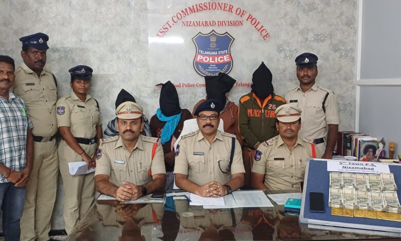 نقلی سونا فروخت کرتے ہوئے خاتون سے بھاری رقم لوٹنے کے واقعہ ۔ تلنگانہ کے نظام آباد میں 4 افراد گرفتار