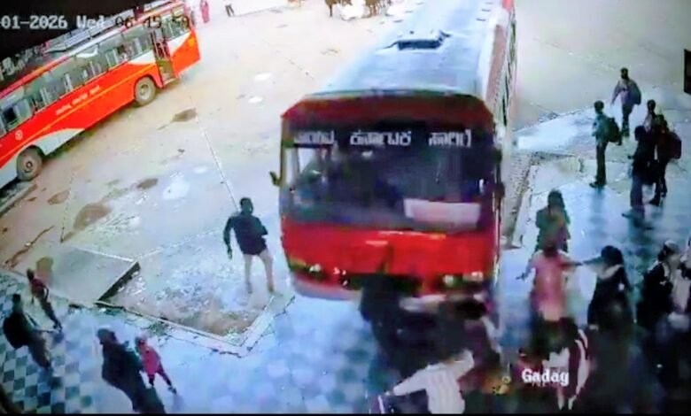 بنگلورو۔ ریاست کرناتک کے ہاویری شہر کے بس اسٹینڈ پر چہارشنبہ کی صبح ایک دل دہلا دینے والا حادثہ پیش آیا جب ایک بے قابو بس پلیٹ فارم پر انتظار کر رہے مسافروں پر چڑھ گئی جس کے نتیجے میں کم از کم چار افراد شدید زخمی ہو گئے۔