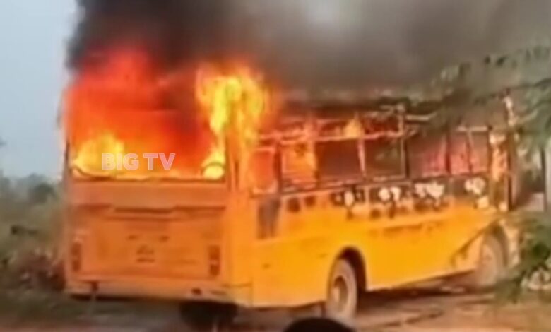 ڈرائیور–کلینر میں جھگڑا… اسکول بس کو آگ کے حوالے