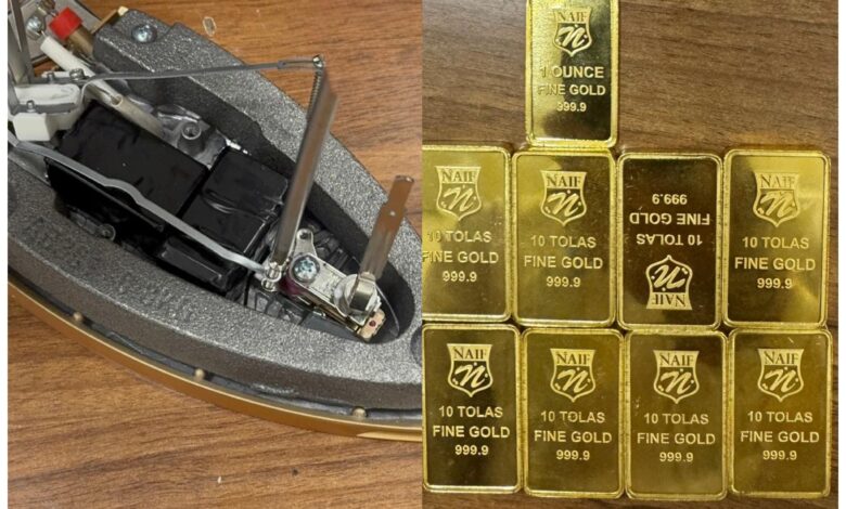 حیدرآباد کے شمسآباد ایئرپورٹ پر ایک کروڑ 55 لاکھ روپے مالیت کا سونا ضبط -شارجہ سے آئرن باکس میں چھپا کر لایا گیا تھا سونا