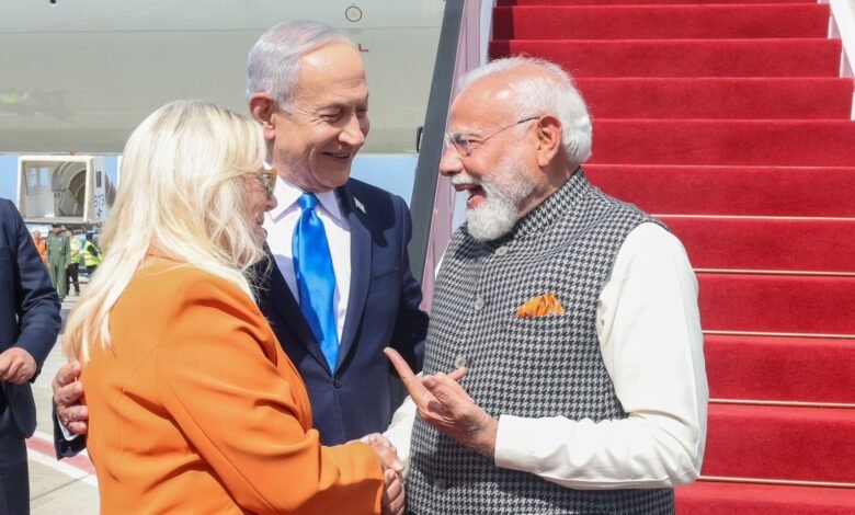 نریندر مودی پہنچے اسرائیل، نتن یاہو اور ان کی شریک حیات نے کیا استقبال۔میرے عزیز دوست اسرائیلی وزیر اعظم کی دعوت پر کررہا ہوں دورہ: مودی