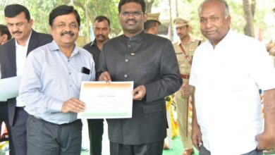 نظام آباد۔28جنوری۔ ( پریس نوٹ) ضلع کلکٹر راجیو گاندھی ہنمنتو نے پولیس پریڈ گراؤنڈ نظام آباد میں منعقدہ جشن یوم جمہوریہ تقاریب کے موقع پر ڈاکٹر بلیغ احمد اسسٹنٹ ڈائریکٹر محکمہ اینمل ہسبنڈری نظام آباد کو ان کی محکمہ کیلئے نمایاں خدمات و نیز گزشتہ اسمبلی انتخابات میں نظام آباد…