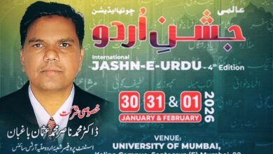 اورنگ آباد : اُردو زبان و ادب کے فروغ کے لیے منعقد کیا جانے والا معروف اور کثیر المقاصد سالانہ ادبی و ثقافتی پروگرام عالمی جشن اُردو کا چوتھا ایڈیشن ممبئی میں تین روزہ ادبی و ثقافتی جشن 30 اور 31 جنوری اور یکم فروری 2026 کو ممبئی یونیورسٹی کالینہ…