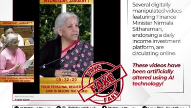 نئی دہلی: مرکزی وزیر فینانس نرملا سیتا رامن کے نام سے کچھ سرمایہ کاری سے متعلق ویڈیوس سوشل میڈیا پر وائرل ہو رہے ہیں جن میں وہ بظاہر کچھ سرمایہ کاری اسکیموں کی تشہیر کرتی دکھائی دے رہی ہیں۔ اس معاملے پر پریس انفارمیشن بیورو (PIB) کے فیکٹ چیک…