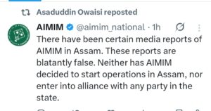 آسام میں مجلس اتحاد المسلمین کے حوالے سے گردش کرنے والی کچھ میڈیا رپورٹس مکمل طور پر غلط ثابت ہوئی ہیں۔ مجلس کی جانب سے واضح کیا گیا ہے کہ نہ تو آسام میں پارٹی کی سرگرمیاں شروع کرنے کا کوئی فیصلہ کیا گیا ہے اور نہ ہی ریاست کی کسی سیاسی جماعت کے ساتھ اتحاد یا مفاہمت پر غور کیا جا رہا ہے۔