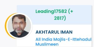 مجلس کے سینئر قائد اخترالایمان نے امور حلقے میں زبردست آغاز کرتے ہوئے 17,582 ووٹ حاصل کیے ہیں۔ وہ اپنے حریفوں پر 2,817 ووٹوں کی برتری کے ساتھ مستحکم پوزیشن میں ہیں۔