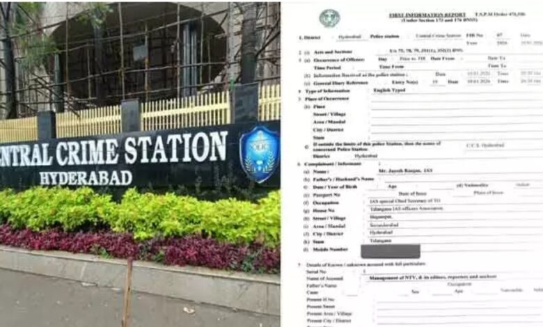 آئی اے ایس اسوسی ایشن کے سکریٹری اور سینئر آئی اے ایس افسر جیش رنجن کی شکایت پر حیدرآباد کی سی سی ایس پولیس نے این ٹی وی انتظامیہ اور چند دیگر سوشل میڈیا چینلز کے خلاف ایف آئی آر درج کرلی ہے۔