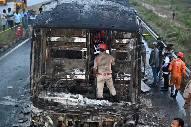 آندھراپردیش کے کرنول کے قریب جمعہ کی علی الصبح ایک دل دہلا دینے والا حادثہ پیش آیا۔ اطلاعات کے مطابق حیدرآباد سے بنگلور جا رہی ایک ویموری کاویری ٹراویل کو چنّٹیکورو کے قریب ایک موٹر سائیکل سے ٹکر ہوگئی، جس کے نتیجے میں بس کے نچلے حصے میں آگ بھڑک اٹھی۔ چند لمحوں میں ہی پوری بس شعلوں کی لپیٹ میں آگئی اور جل کر راکھ بن گئی۔