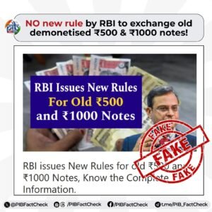 نئی دہلی: سوشل میڈیا پر گردش کرنے والی ان خبروں کو مرکزی حکومت نے مسترد کر دیا ہے جن میں کہا جا رہا تھا کہ ریزرو بینک آف انڈیا (RBI) نے پرانے منسوخ شدہ کرنسی نوٹ تبدیل کرنے کے لیے نئی گائیڈ لائنز جاری کی ہیں۔