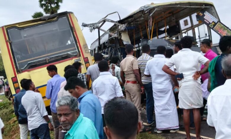 تمل ناڈو میں دو بسوں کی خوفناک ٹکر — 10 افراد ہلاک، 20 زخمی