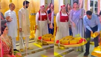 نئی دہلی: دبئی میں مقیم ایک پاکستانی تاجر کی بیٹی عائشہ کی شادی کی تقریب موضوع بحث بنی ہوئی ہے، اس تاجرنے اپنی لخت جگرکو سونے میں تولا۔ میڈیا رپورٹس کےمطابق دلہن کا وزن 69 کلوگرام تھا چنانچہ اس کے وزن کے برابر سونے کی اینٹیں لائی گئیں اور ترازو…