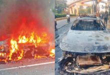 ناگپور میں لگژری کار لمحوں میں خاکستر، خاندان بال بال بچ گیا