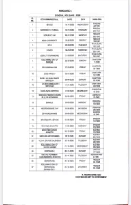 تلنگانہ میں سال 2026 کے عام اور اختیاری تعطیلات کا اعلان