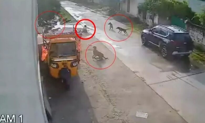 ورنگل ۔ ریاست تلنگانہ نیو شایم پیٹ میں ایک افسوسناک واقعہ پیش آیا۔ سڑک سے گزرنے والی 7 سالہ ےڑکی سریجا پر آوارہ کتوں نے حملہ کر دیا۔ اس واقعہ کا سی سی ٹی وی فوٹیج حال ہی میں سوشل میڈیا پر وائرل ہوگیا۔