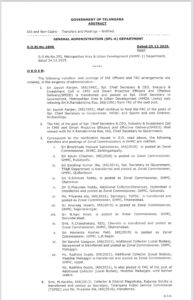 جیش رنجین اسپیشل سکریٹری کوحیدر آبادمیٹرو پلین ڈیولپمنٹ اتھاریٹی کے اسپیشل چیف سکریٹری کے عہدہ کی ذمہ داری دی گئی ہے۔ وہ پہلے سے صنعت اور سرمایہ کاری کے محکمہ کی ذمہ داری سنبھال رہے تھے۔ حکومت نے سندیپ کمار جھا کو قطب اللہ پور زونل کمشنر جی ایچ ایم سی ، پرینکا الا کو خیریت آباد زونل کمشنر جی ایچ ایم سی. مقرر کیا ہے۔ اسی طرح اپور وا چوہان کو کوکٹ پلی ، انوراگ جینتی کو راجند رنگر ، روی کرن کو سکندر آباد، چند را کلا کوشمس آباد، ہیمنت کیشو پٹیل کو ایل بی نگر ؛ نچت گنگوار کو مکا جگری، رادھیکا گپتا کو اپل اور بہیمنت سهاد یور او کو شیری لنگم پلی زونل کمشنر جی ایچ ایم سی مقرر کیا گیا ہے۔