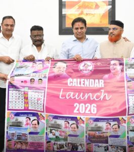 حیدرآباد، 9 جنوری: بھارت راشٹرا سمیتی (بی آر ایس) کے ورکنگ صدر کے۔ ٹی۔ راما راؤ نے جمعرات کو تلنگانہ بھون میں اقلیتی فلاح و بہبود پر مبنی 2026 کا کیلنڈر جاری کیا۔ یہ کیلنڈر بی آر ایس کے سینئر قائد شیخ عبداللہ سہیل نے مرتب کیا ہے، جس میں گریگورین اور ہجری دونوں تقویم شامل ہیں اور اس میں پارٹی سربراہ و سابق وزیر اعلیٰ کے۔ چندر شیکھر راؤ کے اقوال درج ہیں۔