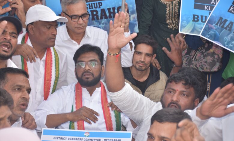 چارمینار کے قریب کانگریس کا بڑا احتجاج
